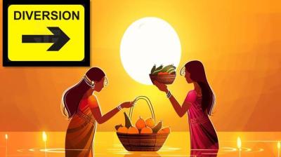 छठ पूजा के चलते घाटों के आसपास दो चरणों में डायवर्जन लागू किया गया है। सोमवार को दोपहर दो बजे से पूजा की समाप्ति डायवर्जन लगाया गया है। दूसरे चरण...