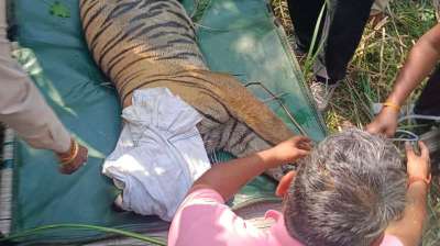 कुदवा रेंज में हुई घटना के बाद बाघ को किया रेस्क्यू