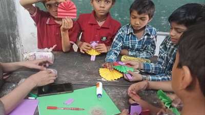 विद्यार्थियों ने बनाई अखबार की रद्दी से थैलियां और मेंहदी के कोन