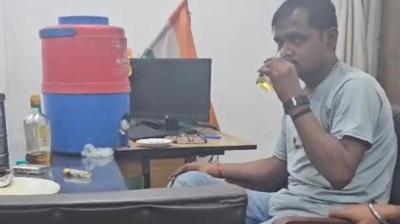 ऑफिस टाइम में शराब पार्टी! रीवा के सरकारी कार्यालय में बाबू पकड़ा गया