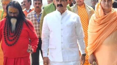 मप्र के पूर्व गृहमंत्री ने बलात्कार आरोपी दाती बाबा का किया भव्य स्वागत